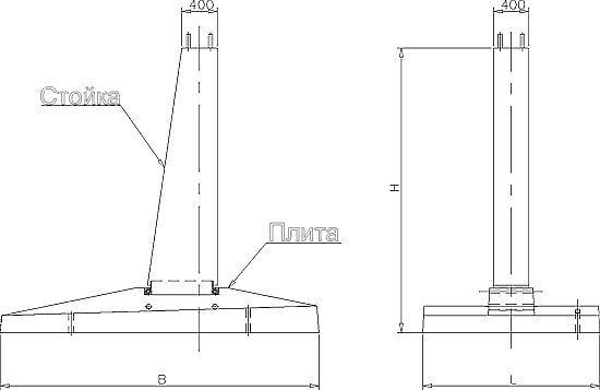 | B | H | L | Бетон, м3 | Закладные детали, кг | Сталь, кг | Плита | Стойка | ||||